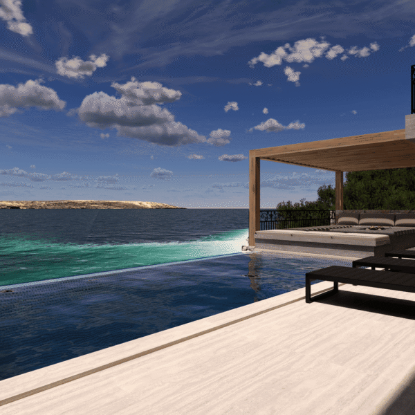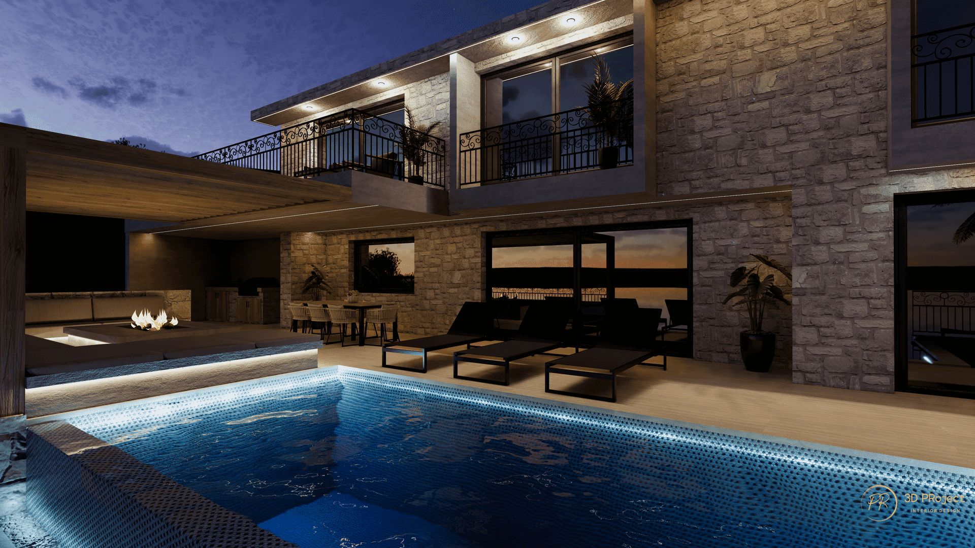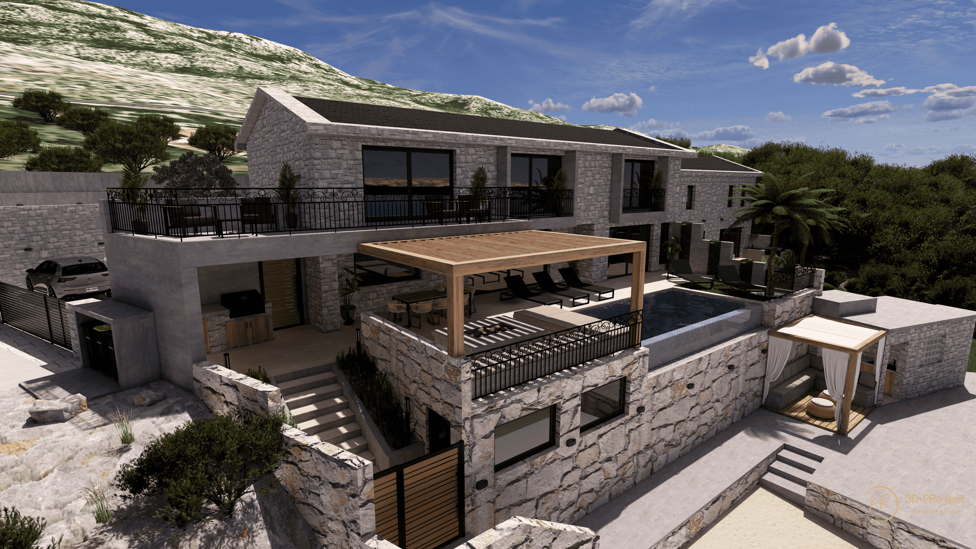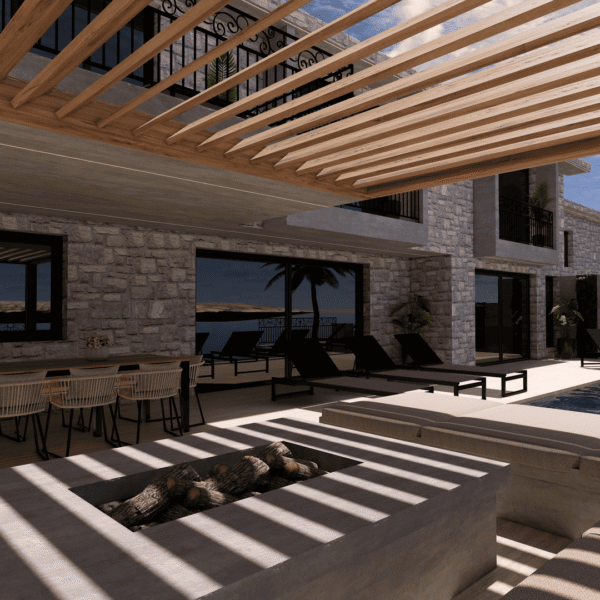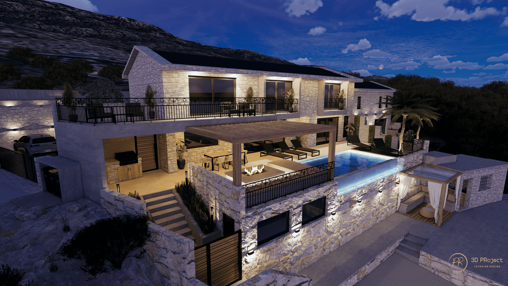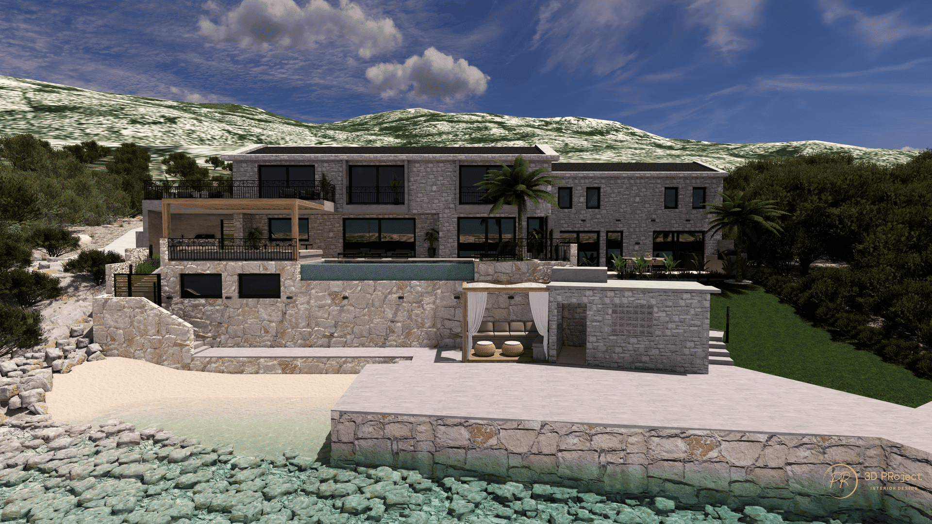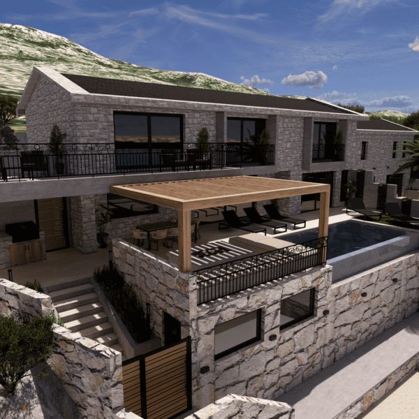 Projekt Lukovo predstavlja suvremenu interpretaciju mediteranske arhitekture, smještenu u zahtjevnom obalnom okruženju s naglaskom na vizure i prirodni kontekst. Kaskadno oblikovani volumeni, velike staklene površine i prostrane terase omogućuju snažnu povezanost interijera s morem i vanjskim prostorima. Posebna pažnja posvećena je funkcionalnoj organizaciji, privatnosti korisnika i korištenju materijala koji osiguravaju sklad s okruženjem i dugoročnu održivost.